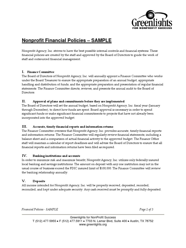 Nonprofit Financial Policies Sample Nonprofit Organization Credit Card